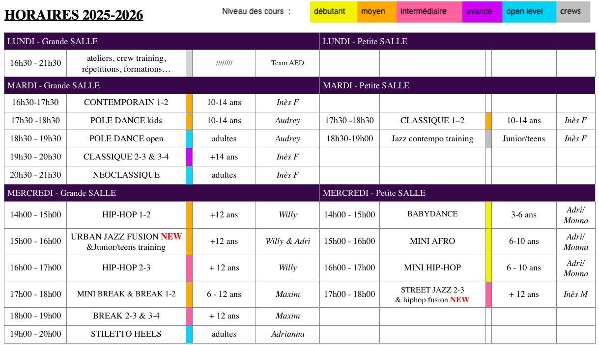 Grille horaire 2025-2026