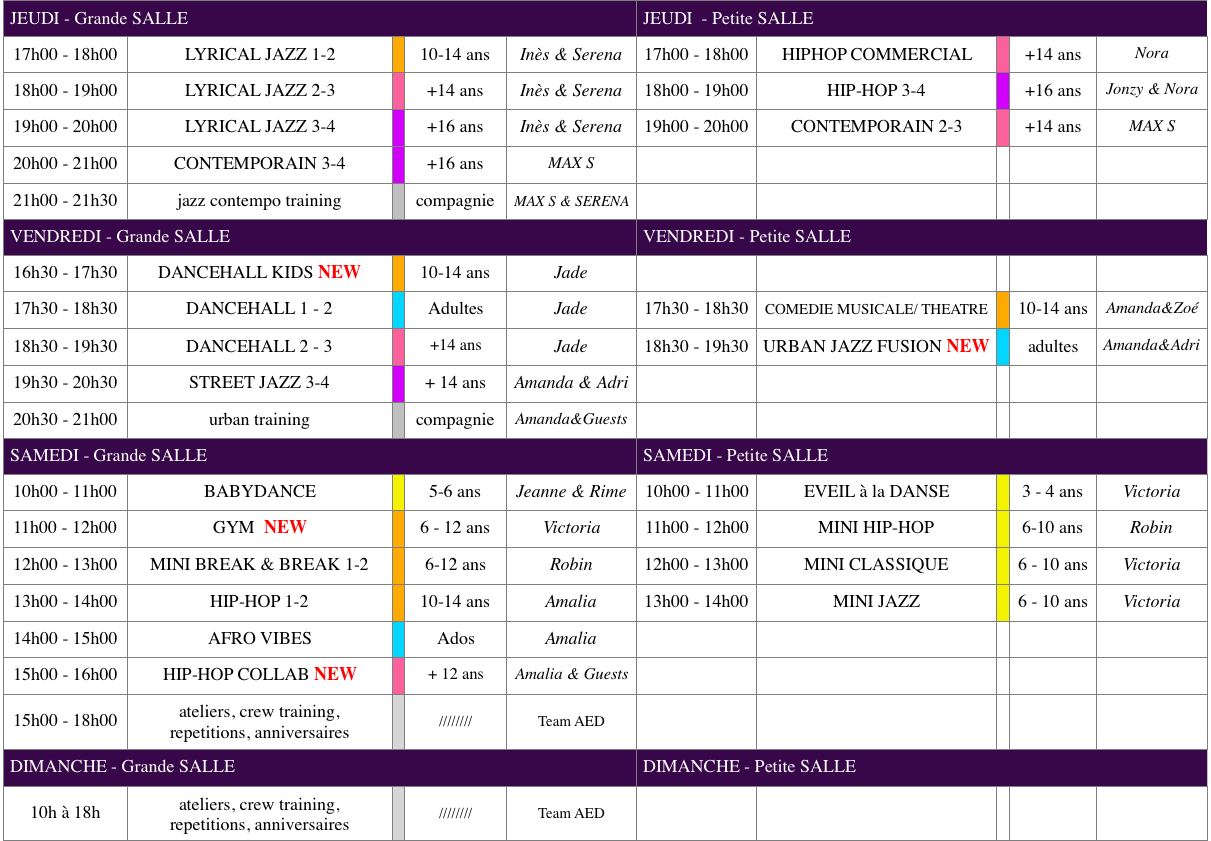 Grille horaire des Crews